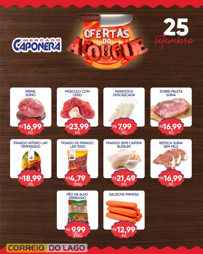 O Mercado e Açougue Caponera realiza nesta quinta-feira (25) as Ofertas do Açougue, com uma série de promoções no setor de carnes, garantindo qualidade e economia para os clientes de Santa Helena.