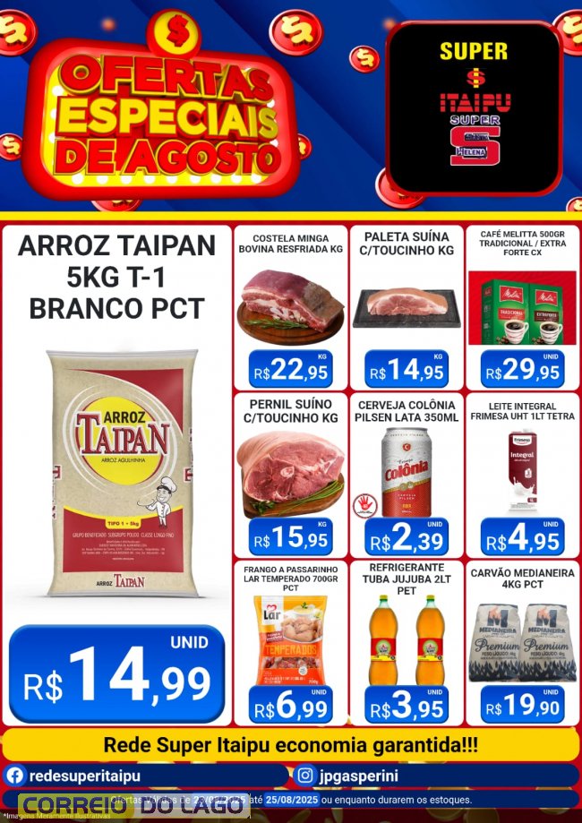 Ofertas especiais de agosto do Super Itaipu e Super Santa Helena garante preços baixos neste fim de semana