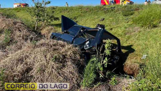 Na tentativa da manobra, os dois automóveis se envolveram em batida. Com a força do impacto, o Uno saiu da pista, capotou em um barranco e parou na canaleta.