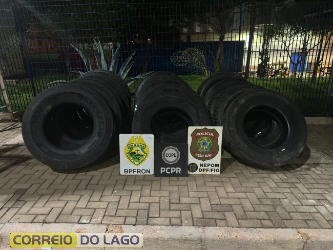 PF e forças estaduais apreendem pneus e cigarros contrabandeados em Foz do Iguaçu