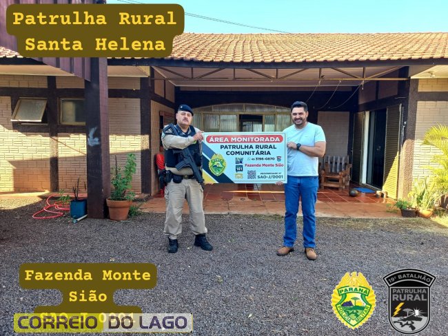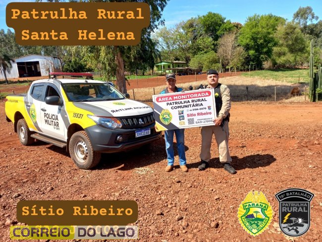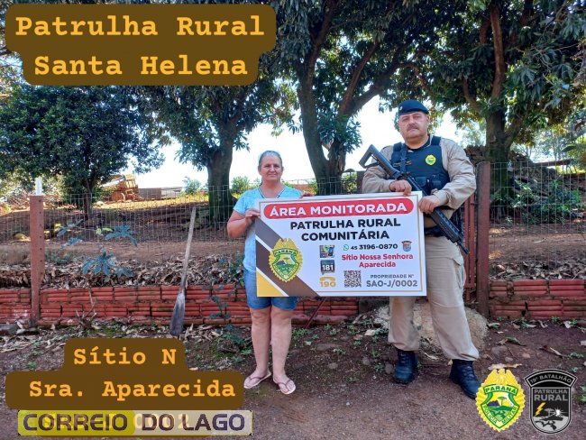 A Patrulha Rural de Santa Helena concentrou suas ações nos municípios de Diamante do Oeste e São José das Palmeiras nos dias 11 e 12 de setembro. Ontem, no interior de Diamante do Oeste, uma nova propriedade foi cadastrada e duas placas entregues aos moradores.