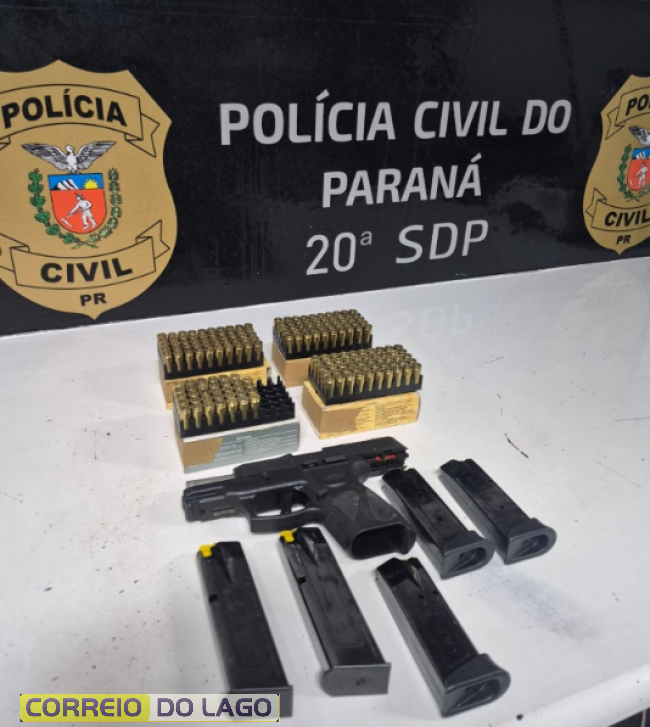 A Polícia Civil do Paraná (PCPR) cumpriu no início da manhã desta terça-feira (20) um mandado de busca e apreensão em Toledo, no âmbito de uma investigação em andamento, resultando na apreensão de arma de fogo e munições. A ação foi realizada por duas equipes da 20ª Subdivisão Policial de Toledo (20ª SDP), em cumprimento a ordem judicial expedida pelo Juiz das Garantias da 2ª Vara Criminal de Toledo. A apreensão ocorreu na Linha Peabiru, no interior do município.