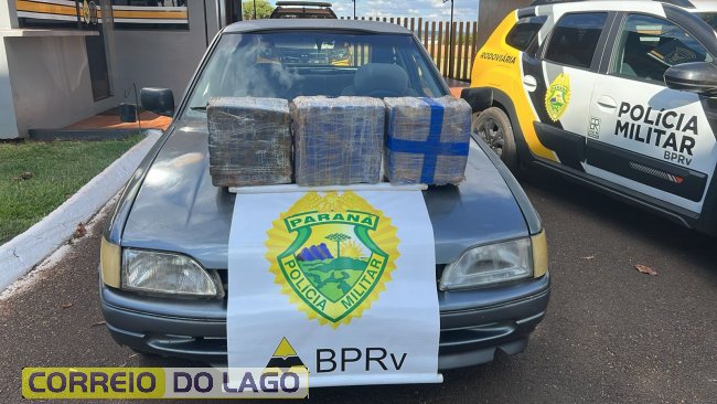 Segundo a corporação, por volta das 16h, os policiais abordaram um Ford Escort, de cor cinza, com placas de Cascavel (PR), conduzido por um homem de 28 anos. Durante a vistoria no automóvel, foram localizados três fardos de maconha no bagageiro.