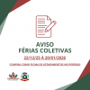 – No Departamento de Licitação e Compras, os atos administrativos, inclusive prazos de editais, permanecerão suspensos de 02 a 20 de janeiro de 2026, em razão das férias dos servidores responsáveis pelos certames.