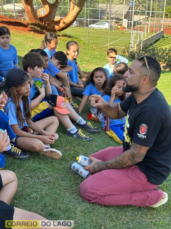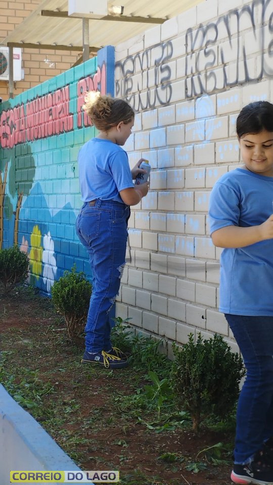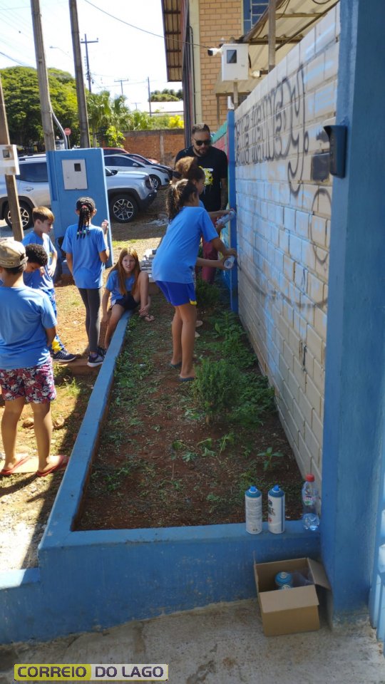 Projeto Linha Ecológica leva oficina de grafite à Escola Municipal Presidente Kennedy, em Diamante do Oeste