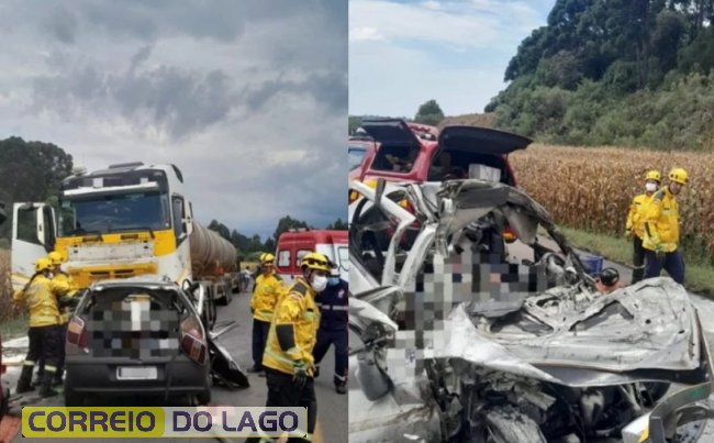 As vítimas que morreram foram encontradas presas às ferragens do carro, segundo o portal ND Mais. O condutor da carreta, um homem de 50 anos, não sofreu ferimentos. O caminhão dele transportava 57 mil litros de biodiesel, segundo o Corpo de Bombeiros. Devido ao forte impacto da batida, o carro ficou completamente destruído. As causas do acidente deverão ser apuradas. Vítimas mortas em acidente podem ser da mesma família Documentos encontrados por socorristas dentro do carro em que as quatro pessoas morreram indicam que elas eram de nacionalidade venezuelana e da mesma família. As identidades delas, porém, não foram divulgadas.