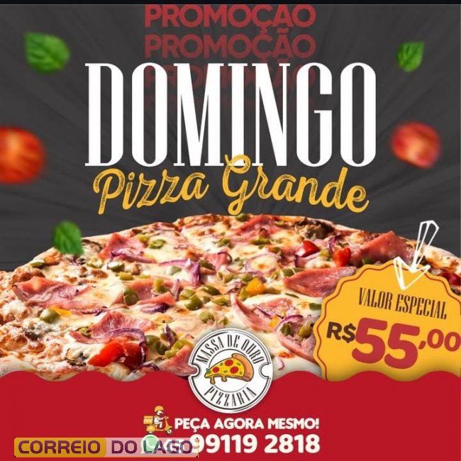 Nada melhor do que encerrar o fim de semana com uma boa pizza. Neste domingo (06), a Pizzaria Massa de Ouro oferece uma promoção especial: pizza grande por apenas R$ 55,00.