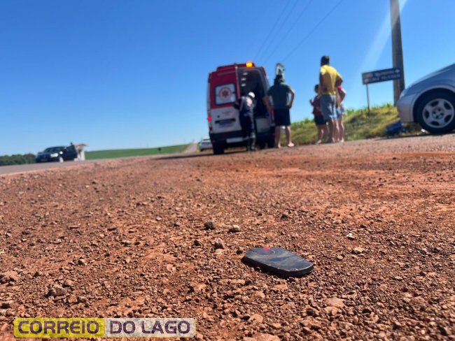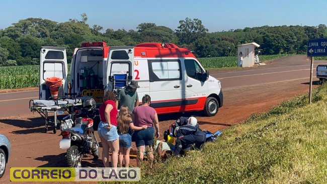 No local do acidente, os socorristas encontraram um homem e uma mulher, ambos moradores de Santa Helena, que estavam em uma motocicleta com placa paraguaia. O homem apresentou escoriações no braço, enquanto a mulher apresentava suspeita de fratura na região da costela.