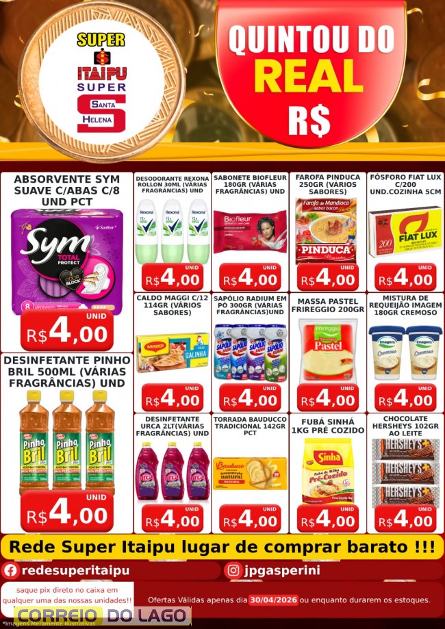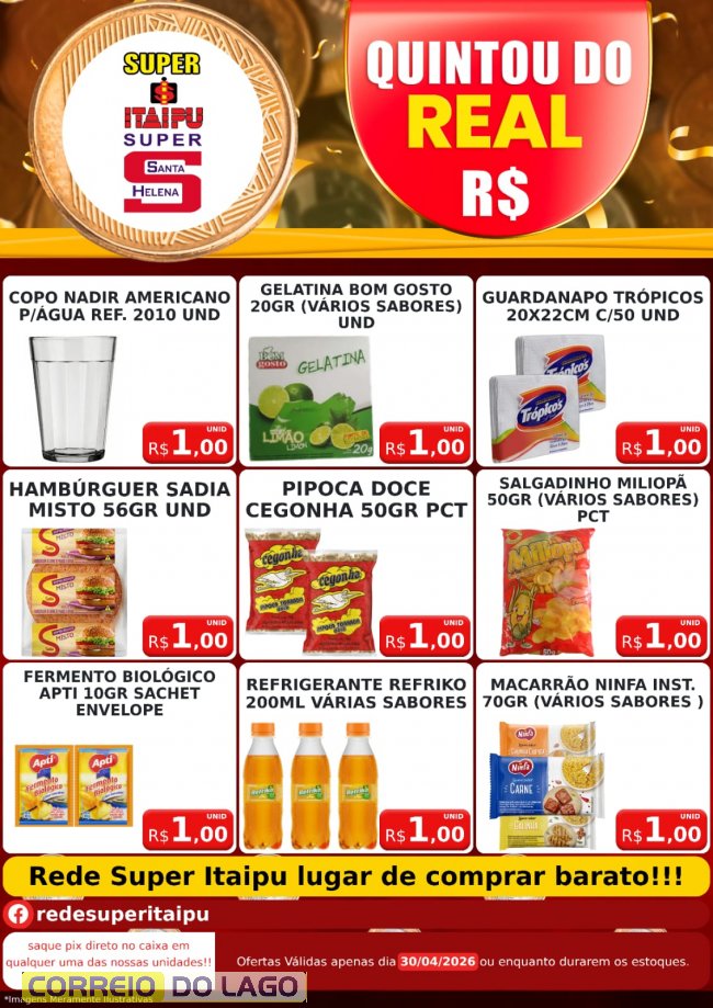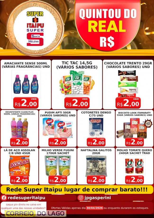 Quintou do Real e Deu a Louca Nos Preços traz variedades de produtos a partir de 1 Real nos Super Itaipu e Super Santa Helena