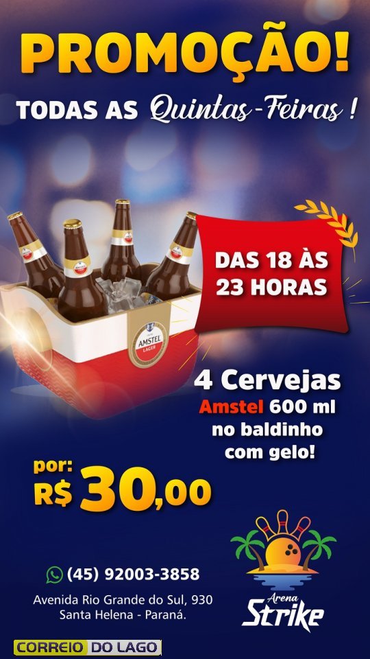 Já combina com os amigos e a família e aproveite uma quinta diferente, com comida, bebida e opções de lazer no mesmo lugar. Também é possível usar as quadras de areia e as pistas de boliche, com agendamento pelo aplicativo Agendei Quadras: https://app.agendeiquadras.com.br/acessar/quadra/pr-santa-helena-arena-strike.