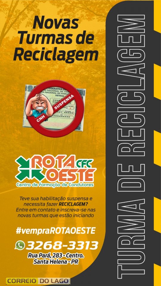 A Rota Oeste Centro de Formação de Condutores em Santa Helena está com inscrições abertas para novas turmas do curso de reciclagem. A capacitação é destinada a motoristas que tiveram a Carteira Nacional de Habilitação (CNH) suspensa e precisam cumprir o requisito para voltar a dirigir.