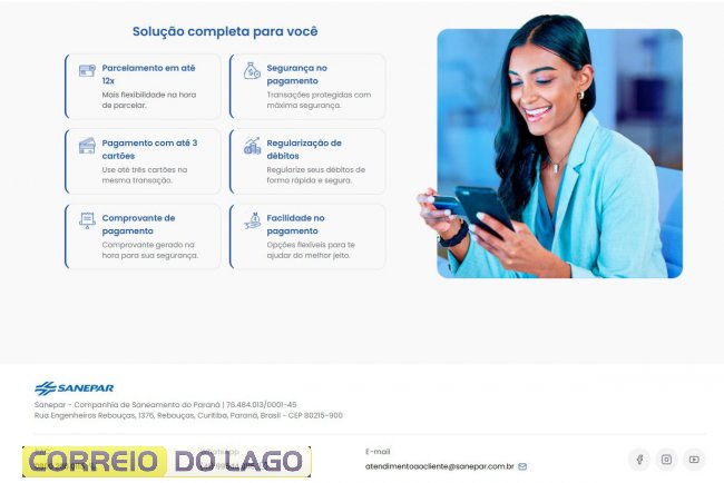 Para mais informações sobre esta nova modalidade de pagamento, o cliente pode entrar em contato pelo telefone 0800 200 0115, pelo WhatsApp no (41) 99544-0115, ou, ainda, no e-mail atendimentoaocliente@sanepar.com.br.