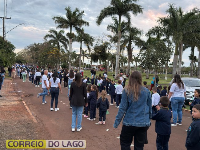 O público compareceu em grande número, acompanhando a atividade que destacou o patriotismo e a união da população.