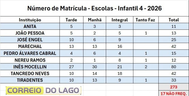 Caso necessário, serão abertas mais vagas na Escola Municipal Tancredo Neves.