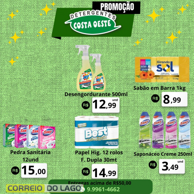 Ofertas especiais em itens de limpeza e higiene estão movimentando a Detergentes Costa Oeste, em Santa Helena. É uma grande oportunidade para quem busca manter a casa ou o local de trabalho bem cuidados, com preços que ajudam a economizar sem abrir mão da qualidade.