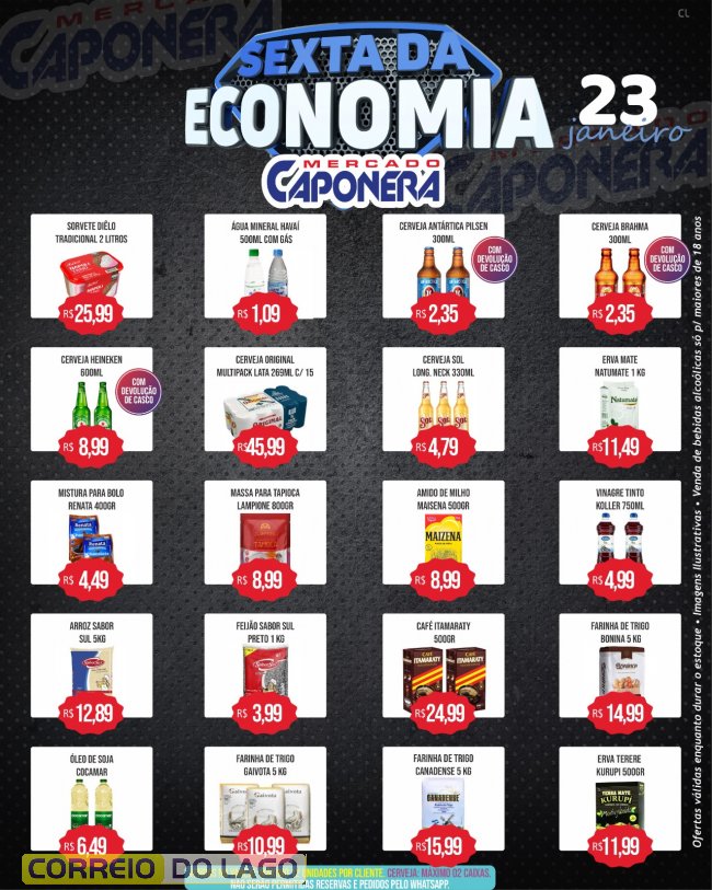 Nesta sexta-feira (23), o Mercado e Açougue Caponera realiza a sexta da economia, com ofertas especiais válidas somente hoje ou enquanto durarem os estoques, proporcionando mais economia aos consumidores de Santa Helena e região.