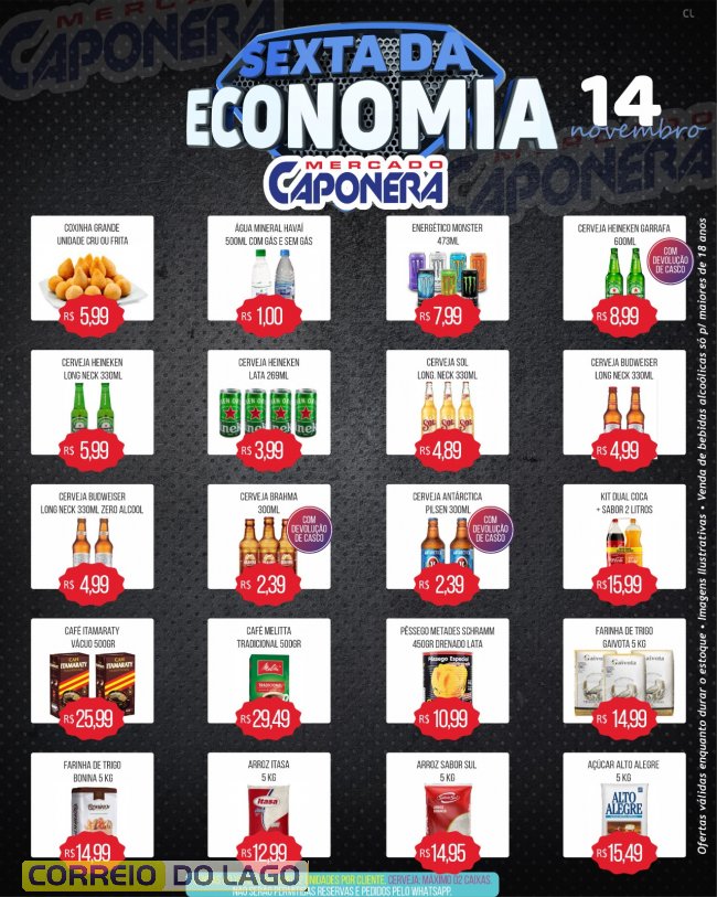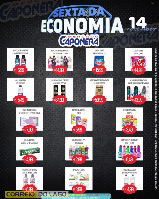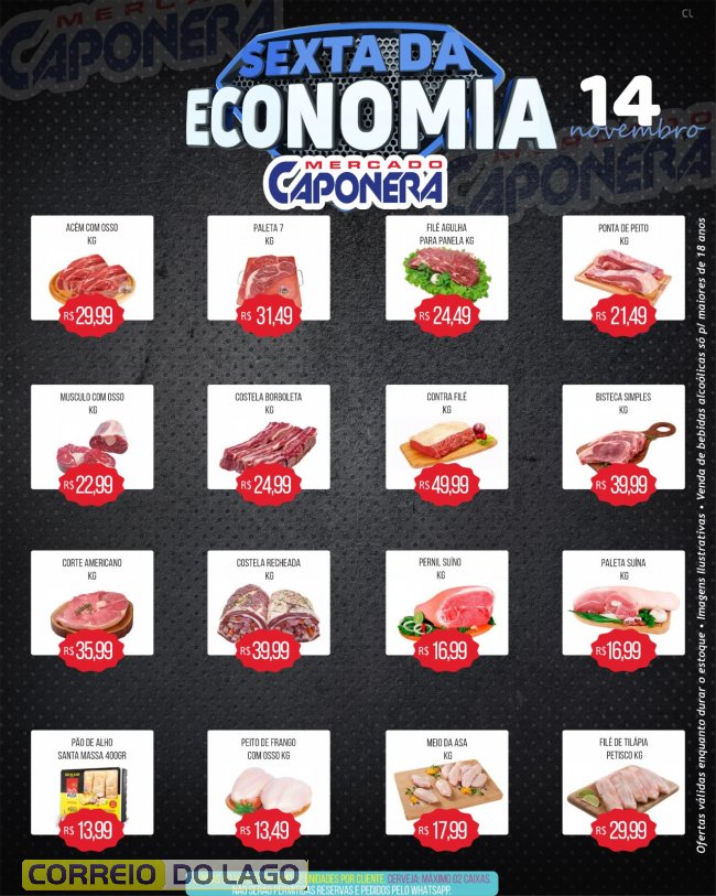 O Mercado e Açougue Caponera preparou muitas ofertas para você nesta sexta-feira (14). Esta é a oportunidade perfeita para abastecer a despensa de casa com os melhores preços da região! Confira a lista.