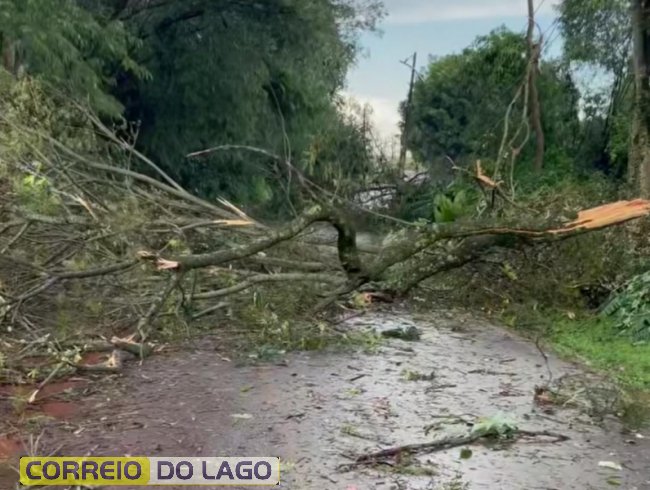 Na região da Vila Rural também houve queda de galhos e árvores, sendo algumas às margens da BR-163.