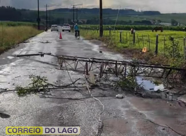 Os ventos também derrubaram uma torre, às margens da estrada da Lira, que acabou atingindo postes luz, que foram danificados. Fios de energia foram rompidos e a região está sem eletricidade.