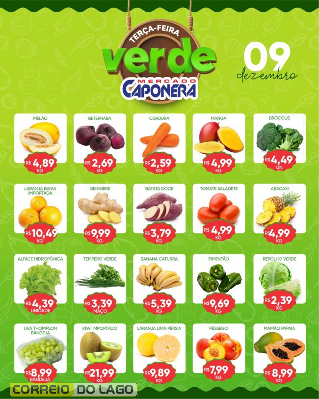 Nesta terça-feira (9), o Mercado Caponera preparou uma promoção especial para você economizar sem abrir mão da qualidade. A seção de hortifruti está repleta de ofertas exclusivas, com frutas, verduras e legumes fresquinhos.