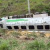 Caminhão de ração tomba na PR-488 entre Santa Helena e Diamante do Oeste
