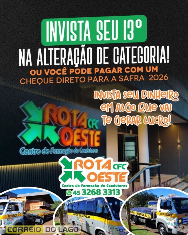 No CFC Rota Oeste você pode investir seu 13° salário na sua carreira e habilitar-se para uma nova categoria de direção. Esta é a última semana de atendimento do ano e para 2026 os valores serão reajustados.
