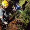 Momentos em que o corpo era retirado de onde havia sido semienterrado (foto: Silvano Amorim/Bombeiros San Alberto- Py)