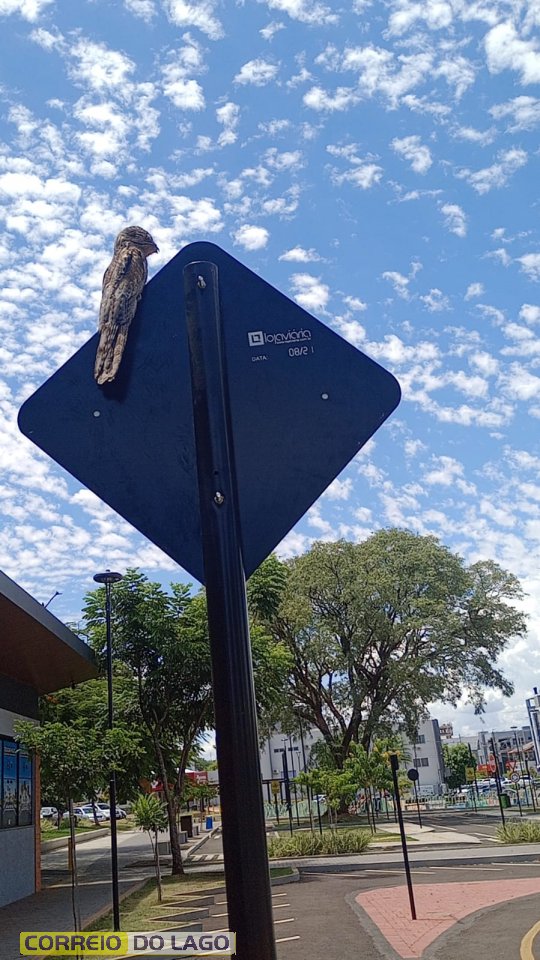 No início da tarde desta quarta-feira (28), uma cena curiosa chamou a atenção de quem passava pela Praça do Colono, em Santa Helena. Uma leitora do Correio do Lago compartilhou imagens de um urutau pousado calmamente sobre uma placa de sinalização, em pleno espaço urbano. Inicialmente confundido com uma coruja, o animal permaneceu imóvel por alguns minutos, observando o movimento ao redor sem se incomodar com a presença das pessoas.