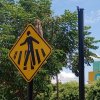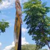 Urutau, confundido com coruja, chama atenção ao pousar tranquilamente em placa na Praça do Colono, em Santa Helena