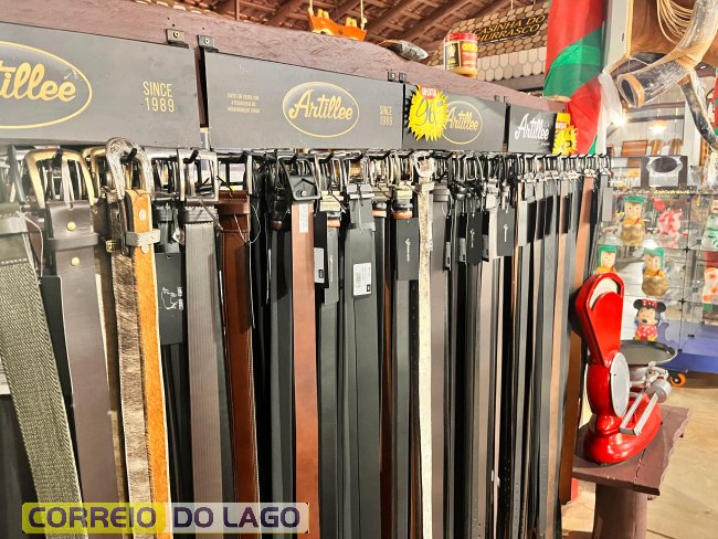 Variedade e qualidade em cintos de couro ganham destaque em apresentação no Rancho Crioulo, em Santa Helena
