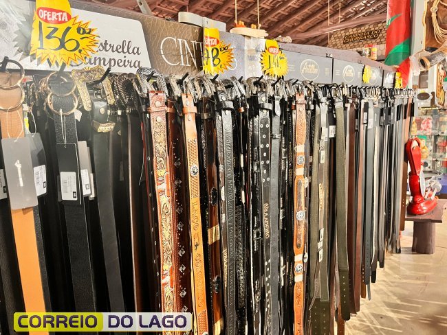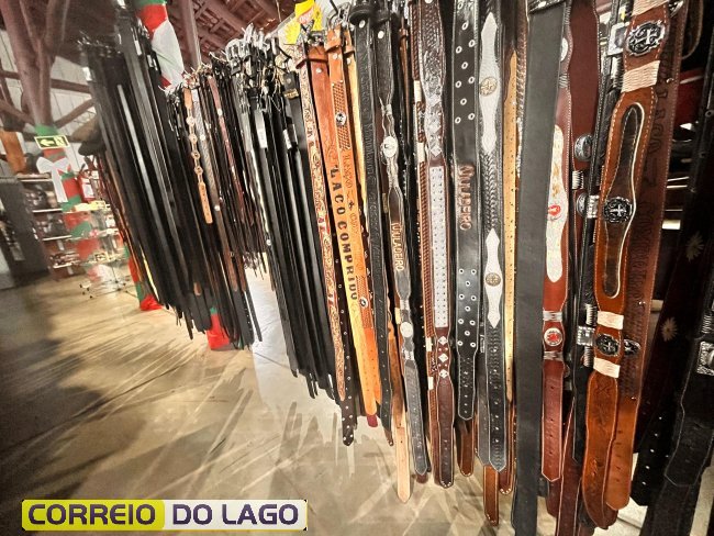 Variedade e qualidade em cintos de couro ganham destaque em apresentação no Rancho Crioulo, em Santa Helena
