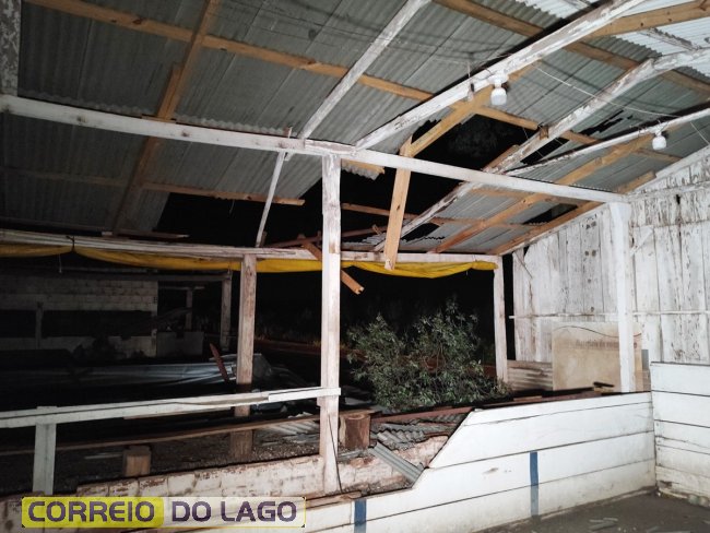Um vendaval rápido, com duração de cerca de 15 segundos, provocou estragos no clube da Linha Pietrowski e na cancha de bocha, no interior de Nova Santa Rosa, na noite deste sábado (20).