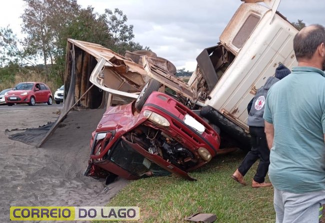 Um grave acidente envolvendo um caminhão e um carro foi registrado na tarde desta quinta-feira (17), na BR-277, em São Miguel do Iguaçu.