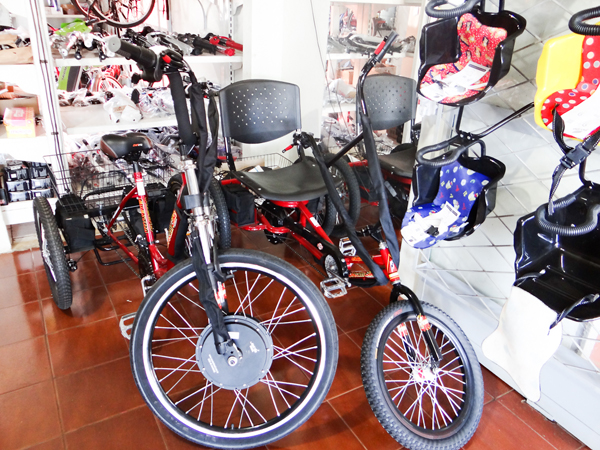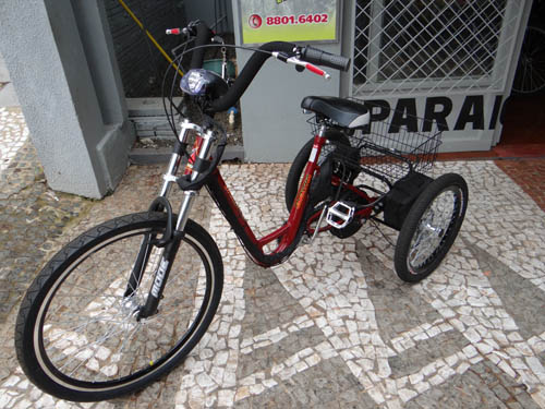 Para facilitar a vida de pessoas com mais dificuldade de locomoção, principalmente idosos que necessitem, a Bicicletaria Paraná tem até triciclo elétrico. Se a pessoa preferir, tem triciclo normal, ou seja, sem motorzinho elétrico.