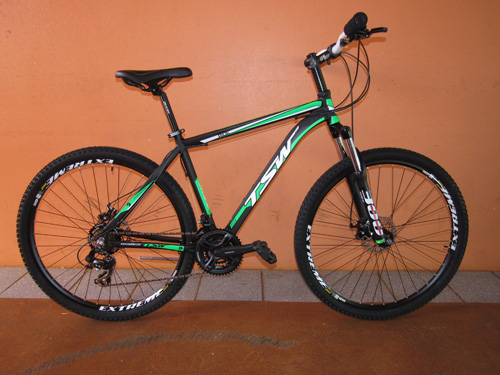 Bicicletas convencionais, inclusive com aro 29, tendência moderna das bikes com alto desempenho tanto no asfalto como na trilha. Características especiais com 27 marchas e freio à disco hidráulico.