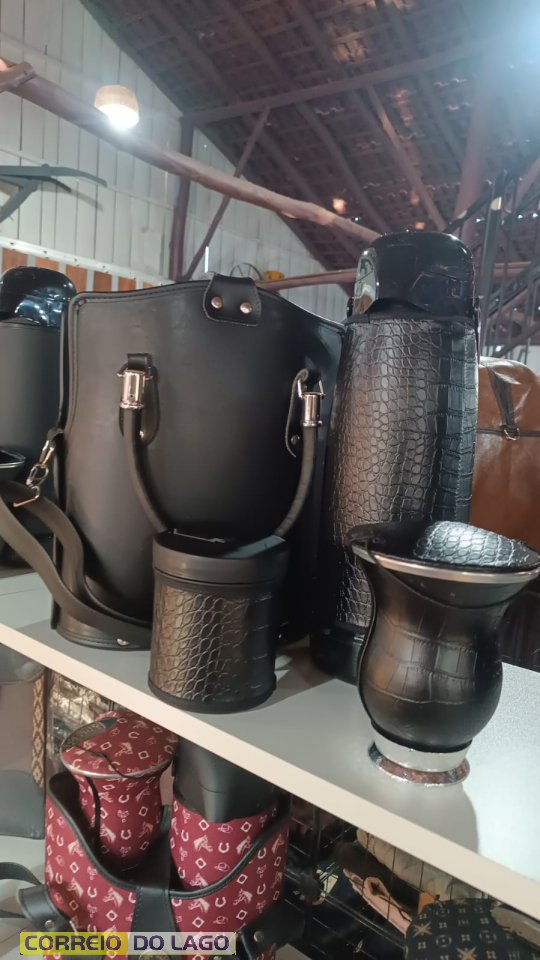 Além dos itens para chimarrão e tererê, o Rancho Crioulo também oferece 30% de desconto em carteiras femininas confeccionadas em couro legítimo.