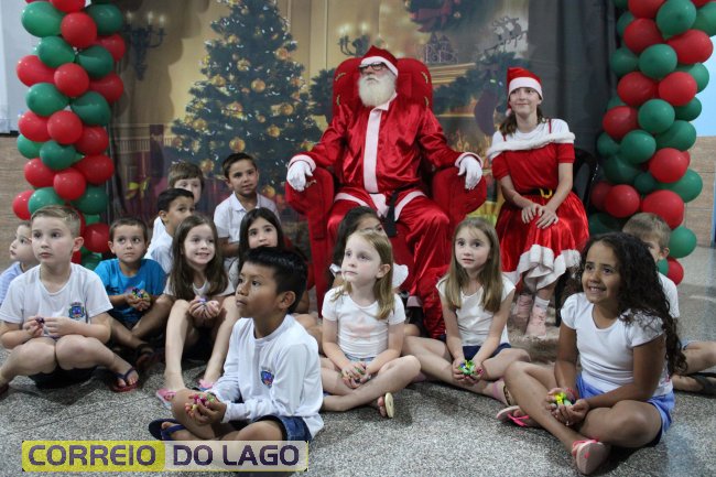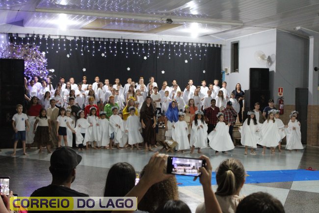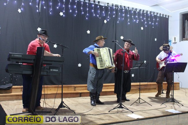 A programação contou com belas apresentações dos alunos da Escola Municipal Nereu Ramos, que emocionaram o público com músicas e encenações preparadas especialmente para a ocasião. Um dos momentos mais aguardados da noite foi a chegada do Papai Noel, que encantou as crianças e trouxe ainda mais magia ao evento. Para completar a festa, o grupo musical Filhos da Fronteira animou o público, envolvendo a comunidade.