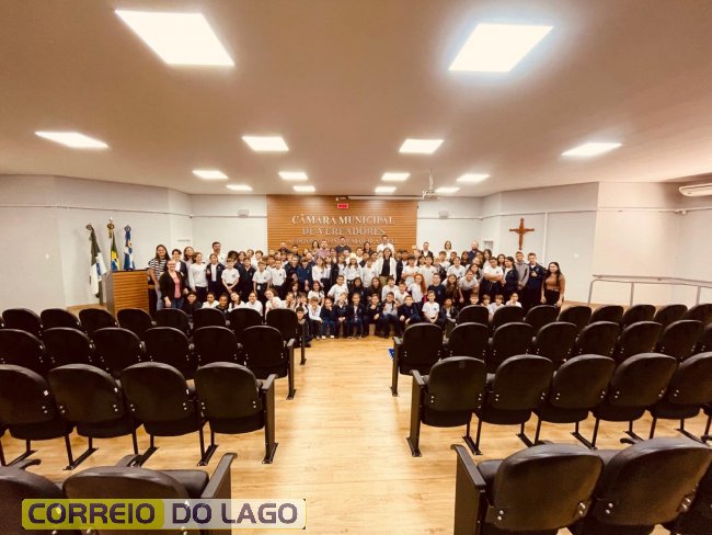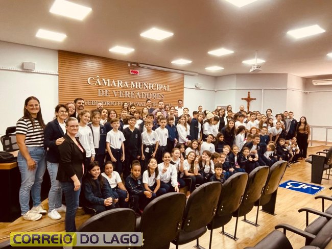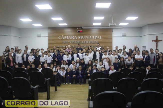 Na manhã desta segunda-feira (12), a Câmara de Vereadores de Santa Helena realizou uma sessão em horário diferenciado, às 8h30, com um público especial: alunos do 5º ano das escolas municipais Professora Inês Mocellin, Marechal Deodoro da Fonseca e Tancredo Neves.