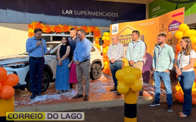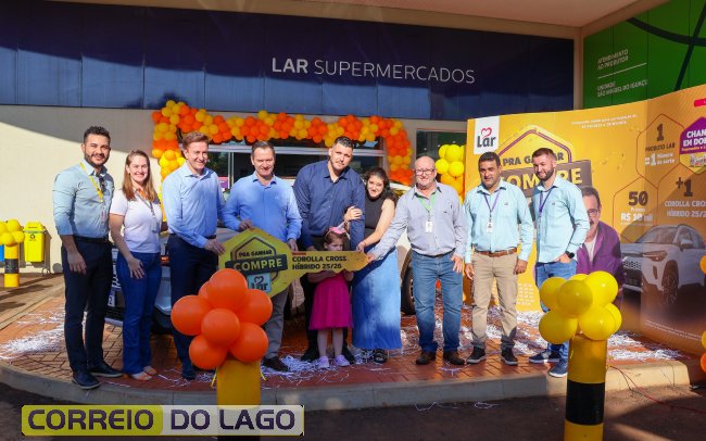 A Lar Cooperativa realizou na manhã desta quinta-feira (02), a entrega oficial do grande prêmio da campanha "Pra Ganhar Compre Lar": um Toyota Corolla Cross Híbrido 25/26, 0km. O sortudo foi Marcelo Willian Gessinger, cliente do Lar Supermercados de São Miguel do Iguaçu/PR.