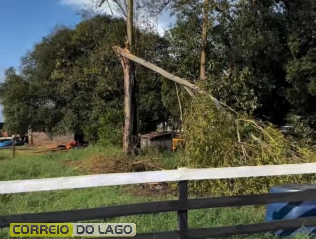 Os ventos também derrubaram uma torre, às margens da estrada da Lira, que acabou atingindo postes luz, que foram danificados. Fios de energia foram rompidos e a região está sem eletricidade.