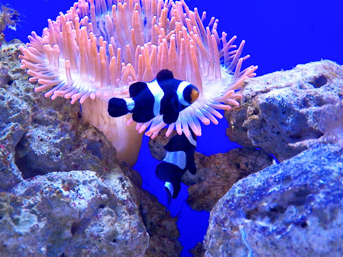 A coloração bonita e de personalidade cativante do preto e branco tornou-o um favorito, chamado de peixe palhaço ocellaris.
