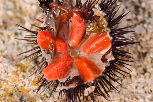 O ouriço-do-mar se alimenta de plantas marinhas e retém compostos orgânicos, incluindo bactérias e vírus, e de fato se proliferam em poluídas eutrophysées áreas perto de portas, escoamento de nitrogênio da agricultura etc.; o ouriço do mar também pode capturar e concentrar metais pesados.
