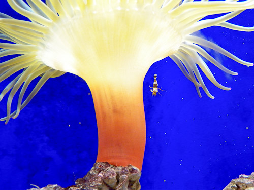 Anêmona-do-mar e Peixe-palhaço, ou peixe-das-anêmonas é o nome vulgar das espécies da subfamília Amphiprioninae na família Pomacentridae. Existem cerca de 27 espécies, uma das quais pertence ao gênero Premnas, pertencendo os outros ao gênero tipo Amphiprion. Deve o seu nome à forma desalinhada como nada. A anatomia interna das anêmonas-do-mar é muito simples: são pequenos sacos, presos ao substrato marinho por um pé adesivo, com uma coluna levando a um disco oral. O peixe-palhaço produz um muco protetor que impede que as “células urticantes”, os nematocistos, penetrem; ao se esfregar lentamente nos tentáculos de uma anêmona, o muco desta passa a combinar-se com o seu; assim a anêmona não o reconhece como uma presa e o peixe se protege de seus predadores.