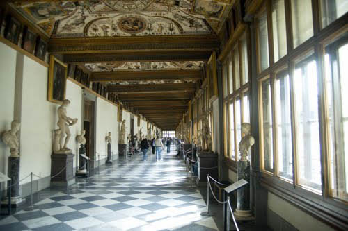 A Galleria degli Uffize é dividida em cerca de cinquenta salas ou ambientes, nomeadas geralmente pelo artista mais importante exposto. Temos salas dedicadas aos maiores artistas do Renascentismo, como Leonardo da Vinci e Rafael Sanzio, salas com arte clássica da Roma antiga, uma grande coleção de quadros de Botticelli com suas incomparáveis Primavera e O Nascimento de Vênus e obras dos maiores artistas do mundo como Michelangelo, Tiziano, Durer e Rubens.