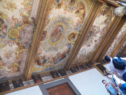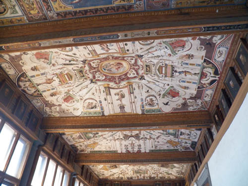 Com Francisco I de Médici, que sucedeu Cosmo a partir de 1574, completa-se a construção em 1580. Entre 1579 e 1581, decoram o tecto com afrescos, chamados de "grotescos" por causa dos motivos utilizados. E finalmente, em 1581, Francisco decide utilizar a galeria do último andar para reunir sua coleção de pinturas, estátuas, objetos de arte antigos e modernos, armaduras, miniaturas, medalhas, para deleite de sua família e da nobreza local.