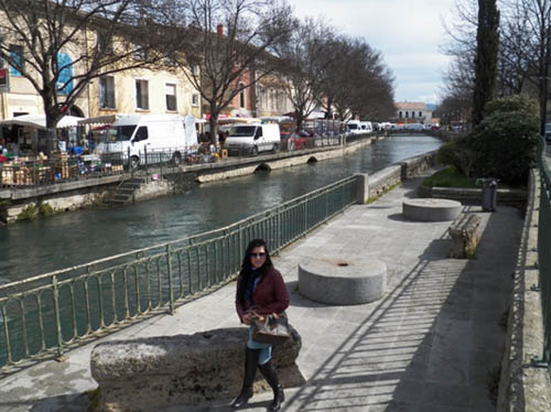 Vamos conhecer um pouquinho da cidade também: A cidade L’isle-sur-la-Sorgue é uma cidade atípica para a região. Localizada no meio de uma planície, é banhada pelo rio Sorgue, que se abre em vários canais na área urbana, formando como se fossem ilhas habitadas. Esta característica lhe rendeu o apelido de Veneza do Comtat. Um pouco de exagero, mas as águas deram, sim, um toque especial à cidade.