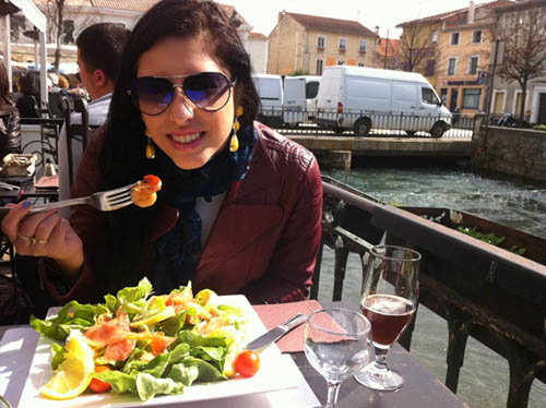 Experimentando a gastronomia local, com um prato de frutos do Mar.