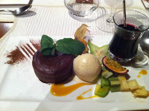 O petit gateau daqui também muito bom, vem com licor de cereja.