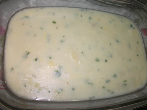 Bata 1/2 kg de mandioca cozida com sal, no liquidificador, com 4 colheres de margarina, 500ml de leite, um pouco de leite de coco, uma pitada de sal.