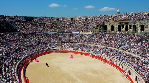A Arena de Nimes (Arènes de Nîmes em francês) é um anfiteatro romano situado na cidade francesa de Nimes. Edificado no ano 27 a.C., na atualidade encontra-se remodelado e utiliza-se como Praça de touros para a celebração de corridas de touros desde 1863 (as Arenas de Nimes são a sede de duas feiras taurinas por ano). Também é utilizada para outro tipo de espetáculos